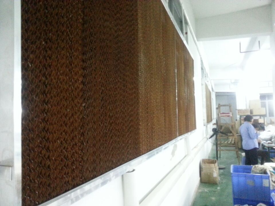 東莞水簾工廠-福泰水簾降溫公司 降溫水簾紙分三種型號。5090 6090 7090 前面兩種是環(huán)??照{專用。而7090是濕簾墻專用的。厚度一 般為10公分與15公分厚。也可以訂做更厚的。這兩種是常用規(guī)格了。5090、6090水簾是專用在蒸發(fā)環(huán)??照{里面的,5090的濕簾紙降溫效果比較明顯。價格也相對貴些。 東莞水簾工廠-福泰水簾降溫公司 負壓濕水簾風機降溫也是很多客戶選擇的水簾墻適用環(huán)境及效果 負壓風機通過自動控制系統(tǒng)實現風機百葉的自動開啟和關閉達到防塵、防水、美觀的效果。噪音低、風量大、耗電少、降溫效果明顯;既可吹風、也可抽風,質量保證,是廠房等降溫通風的比較合適選擇。 福泰”降溫濕簾”降溫是通過蒸發(fā)降溫的一種經濟的降溫方式。干熱空氣通過水簾進入室內,由于水簾內孔壁均勻布滿水膜,這樣室外新鮮空氣穿過水簾時,水簾上的水會吸收空氣中的熱量并產生蒸發(fā)現象,使新鮮空氣溫度下降,濕度增加,完成降溫過程,從而使廠房里的空氣變得涼爽、濕潤 。