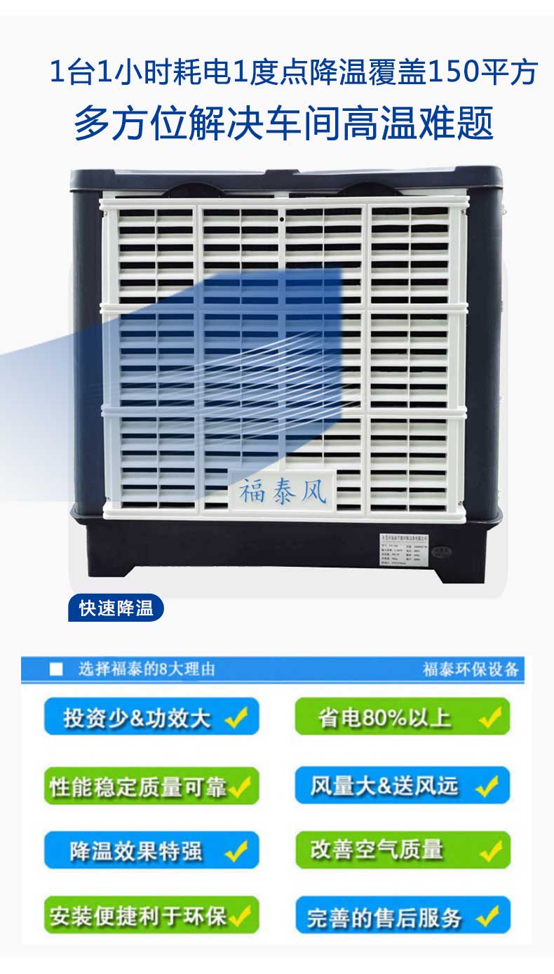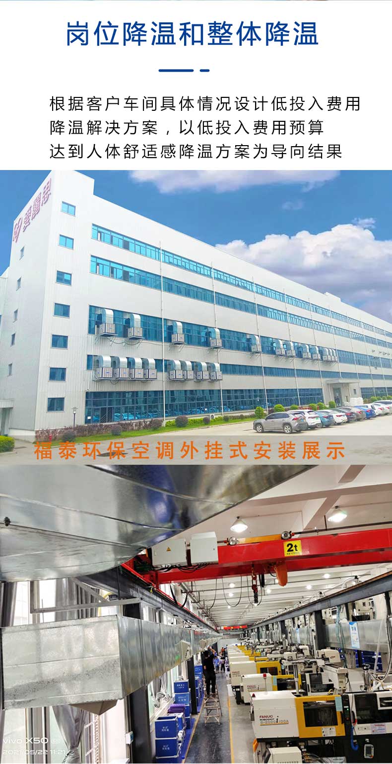 塑料廠注塑車間降溫問題,對(duì)癥采用設(shè)計(jì)合理的降溫方案,將新風(fēng)送到注塑車間形成空氣對(duì)流,同時(shí)把車間異味,粉塵,高溫氣體排出。持續(xù)不斷新風(fēng)循環(huán)降溫方案,環(huán)??照{(diào)設(shè)備是解決注塑廠問題快速有效的降溫設(shè)備,開放式降溫和半敞開的環(huán)境降溫用環(huán)??照{(diào)設(shè)備效果是非常好的,既可以選定崗位降溫方式,也可以根據(jù)需求整體降溫。很多客戶其實(shí)都想選擇一家有經(jīng)驗(yàn)有科學(xué)計(jì)算的策劃降溫方案給自己的工廠車間改善環(huán)境,那么福泰環(huán)??照{(diào)廠家具體是怎么來(lái)策劃不同行業(yè)的工廠車間高溫、悶熱、粉塵問題呢,你們先了解它具體的降溫原理,環(huán)??照{(diào)在出口的干球溫度比室外干球溫度低5-12℃(干熱地區(qū)可達(dá)15℃),空氣愈干熱,其溫差愈大,降溫效果越好。由于空氣始終是從室外引進(jìn)室內(nèi),所以能保持室內(nèi)空氣的新鮮;同時(shí)由于該機(jī)利用蒸發(fā)降溫原理,因此具有降溫和增濕的雙重功能(相對(duì)溫度可達(dá)75%左右